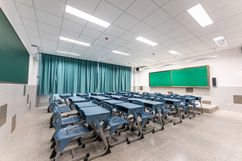 在施工過(guò)程中,港源裝飾項目團隊突破高空作業(yè)多、各工種同步施工、體量大工期短等重重困難,最終為全校師生打造了一個(gè)健康、安全、環(huán)保的學(xué)習環(huán)境。