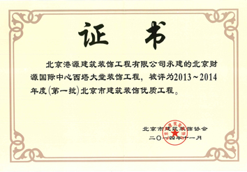 北京市建筑長(cháng)城杯金質(zhì)獎
